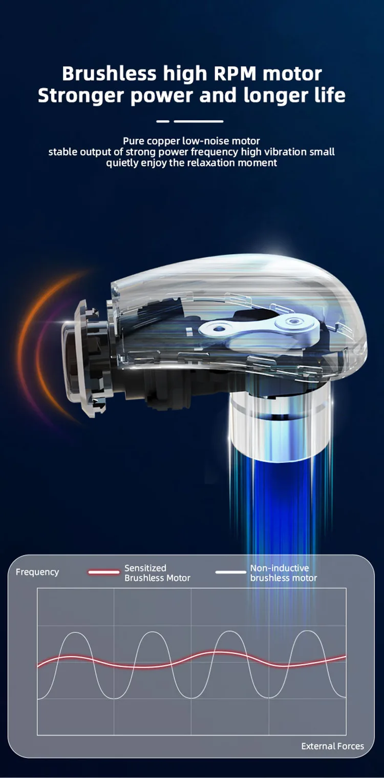 محرك قوي بدون فرش وتقنية فائقة الهدوء.تم تجهيز مسدس التدليك بمحرك قوي بدون فرش يدوم حتى 200 ساعة.إلى جانب تقنية فائقة الهدوء، فإنه يمنحك تجربة تدليك هادئة ومريحة عند أقل من 45 ديسيبل.حتى لو كنت على الهاتف أو تشاهد برنامجًا، فلن تنزعج