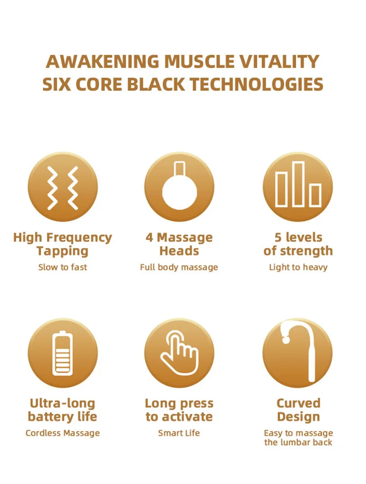 وصلة مقبض مريحة وتصميم مريح.تتميز مطرقة التدليك بمقبض ممتد سهل الإمساك و120 مريح° تصميم منحني يتوافق بسلاسة مع الانحناء الفسيولوجي للعمود الفقري البشري.على عكس بنادق التدليك العادية، فإن مسدس التدليك ذو الأنسجة العميقة ذو الأذرع المرنة يجعل من السهل استرخاء ظهرك/رقبتك/كتفك/خصرك/ساقيك/أذرعك وغيرها من المناطق التي يصعب الوصول إليها دون مساعدة.