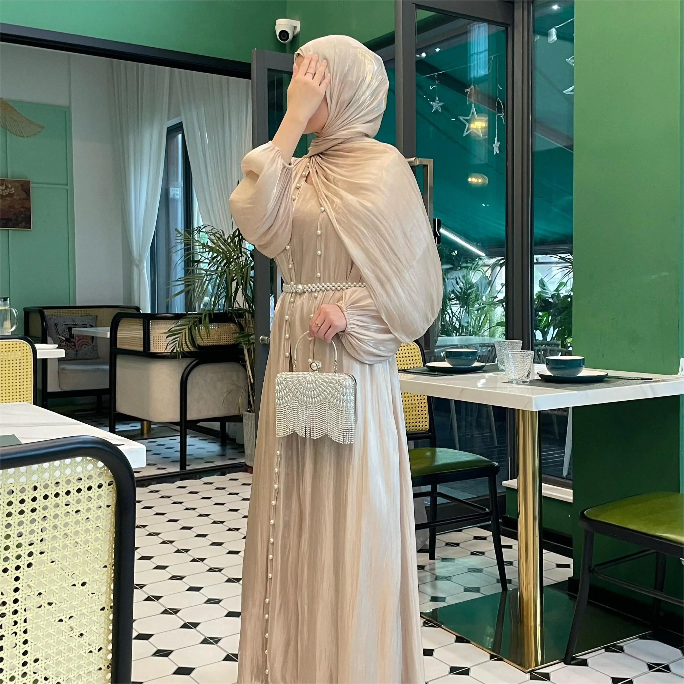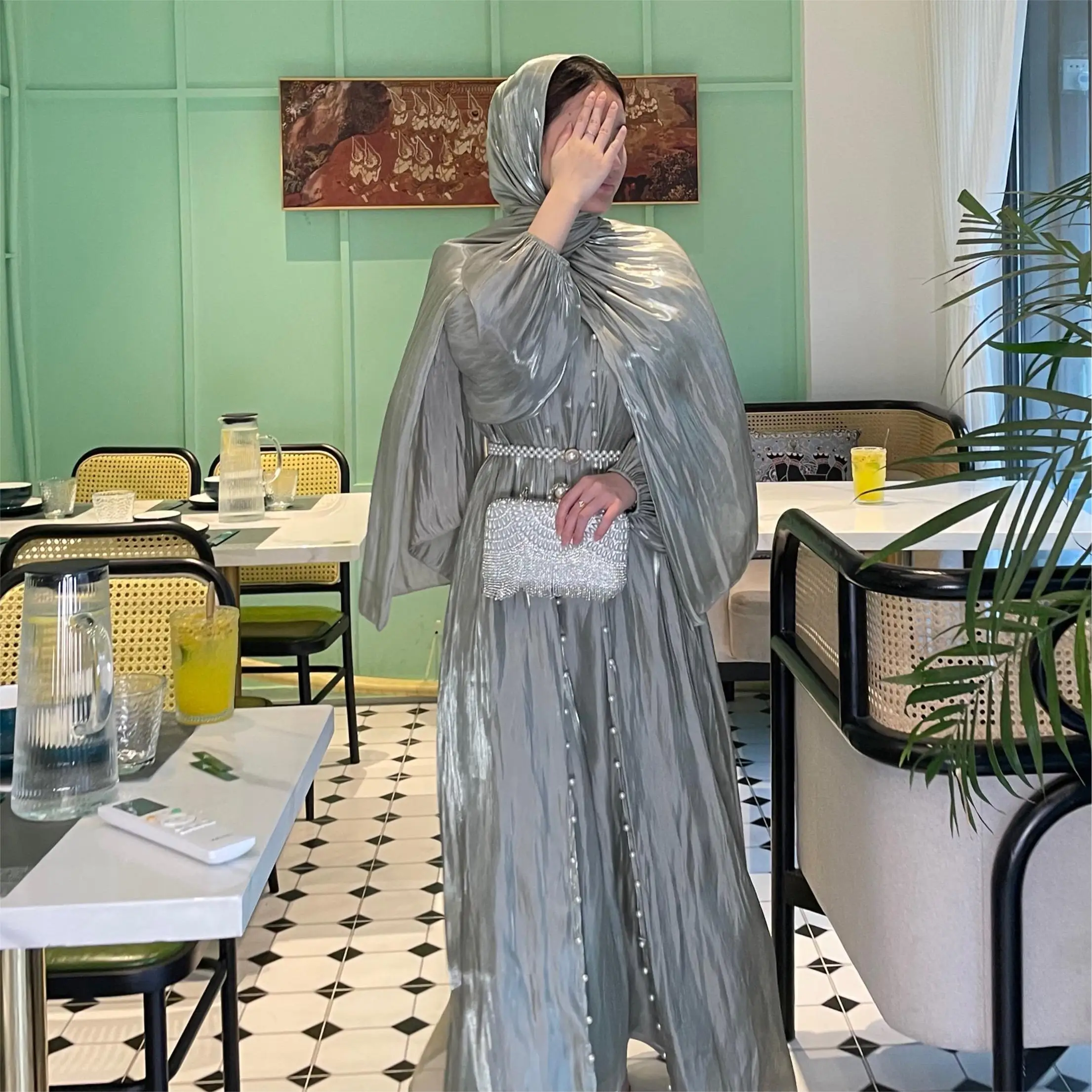 طقم مكون من خمس قطع عباية حريرية لؤلؤية فستان ماكسي متواضع حجاب عباية طويلة للنساء فستان مسلمة