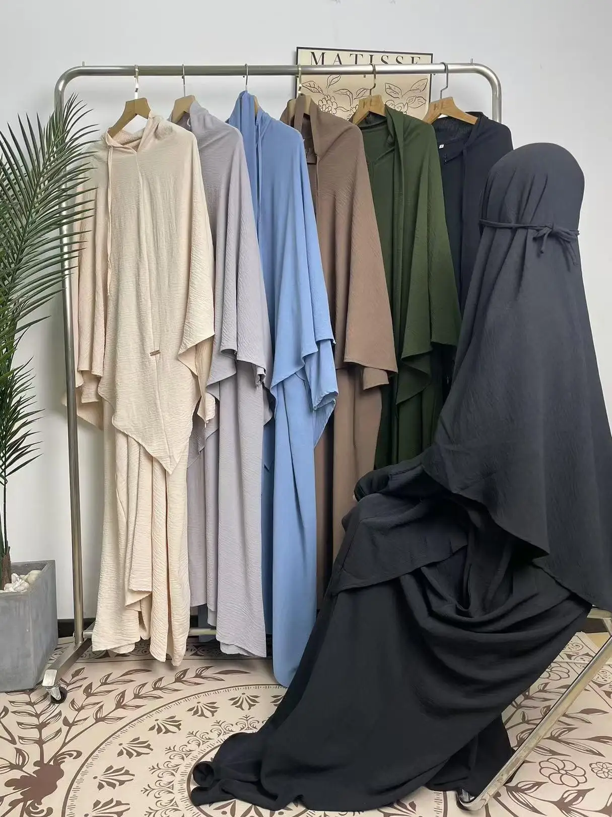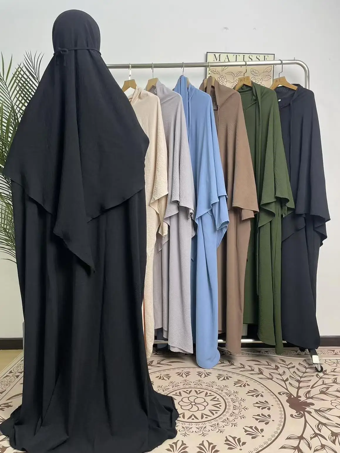 طقم كريب مكون من قطعتين عباية حجاب فستان مسلم طقم حجاب للارتداء اليومي والمناسبات الخاصة