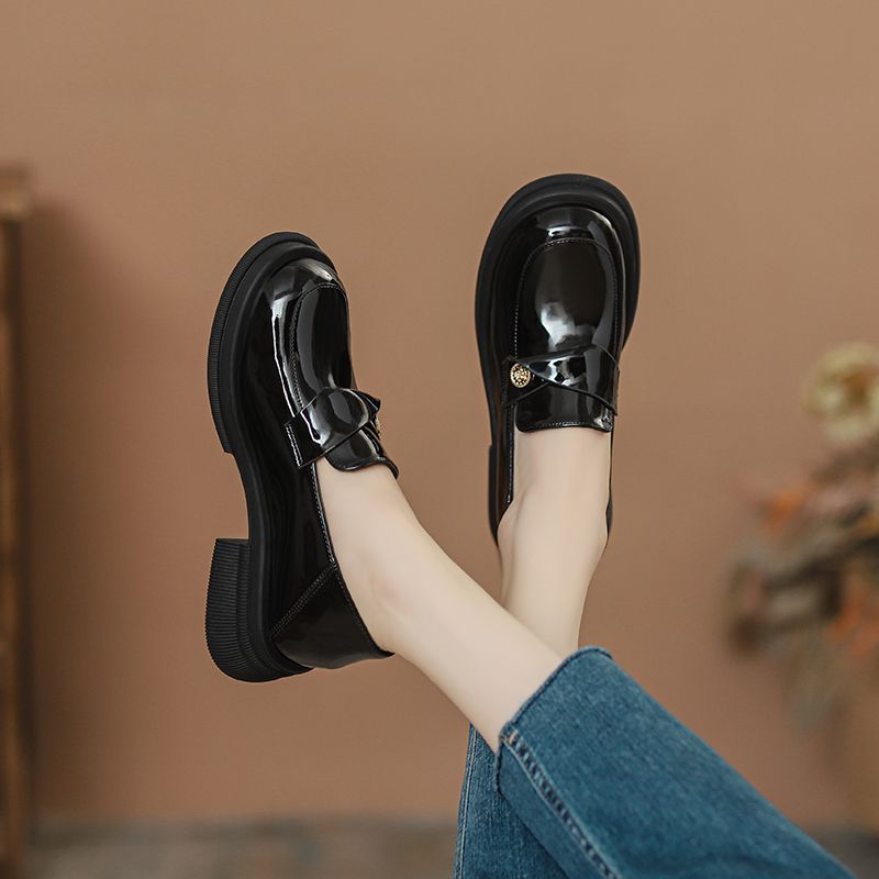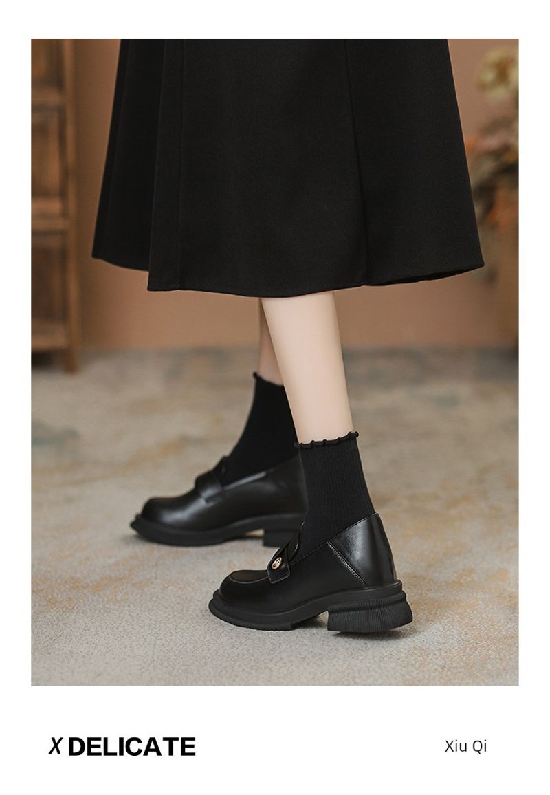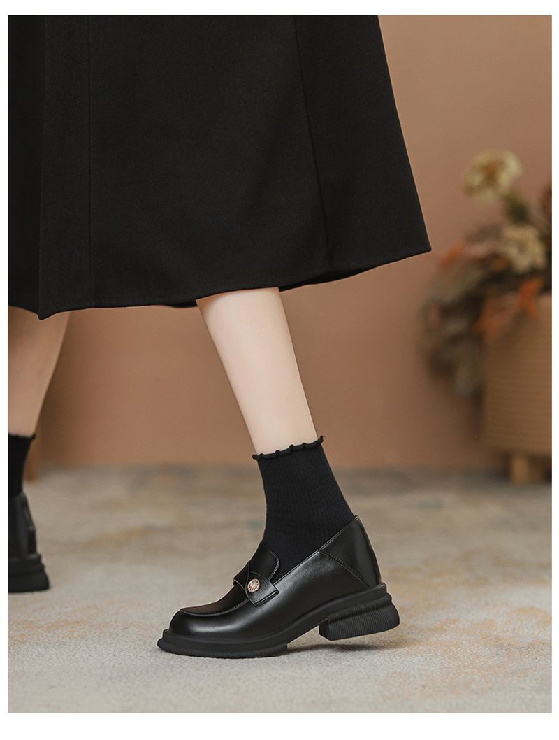 العربية: صغير غير مرئي مرفوع الصنادل النسائية الربيع والخريف الأسلوب البريطاني سoles سوداء طبقة واحدة احترافية