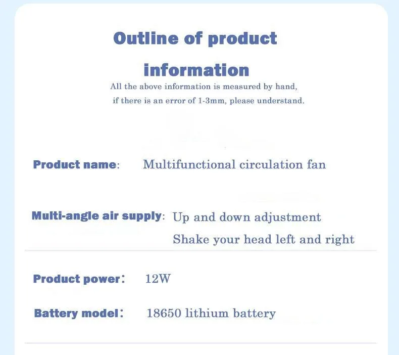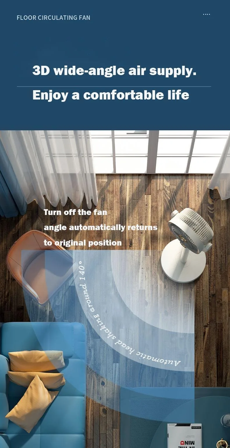 مروحة دوران الهواء الكهربائية الصامتة ، شحن USB في الاستخدام ، مروحة أرضية الحمل الحراري ، توقيت تعمل ، توربين صغير ، المنزلية