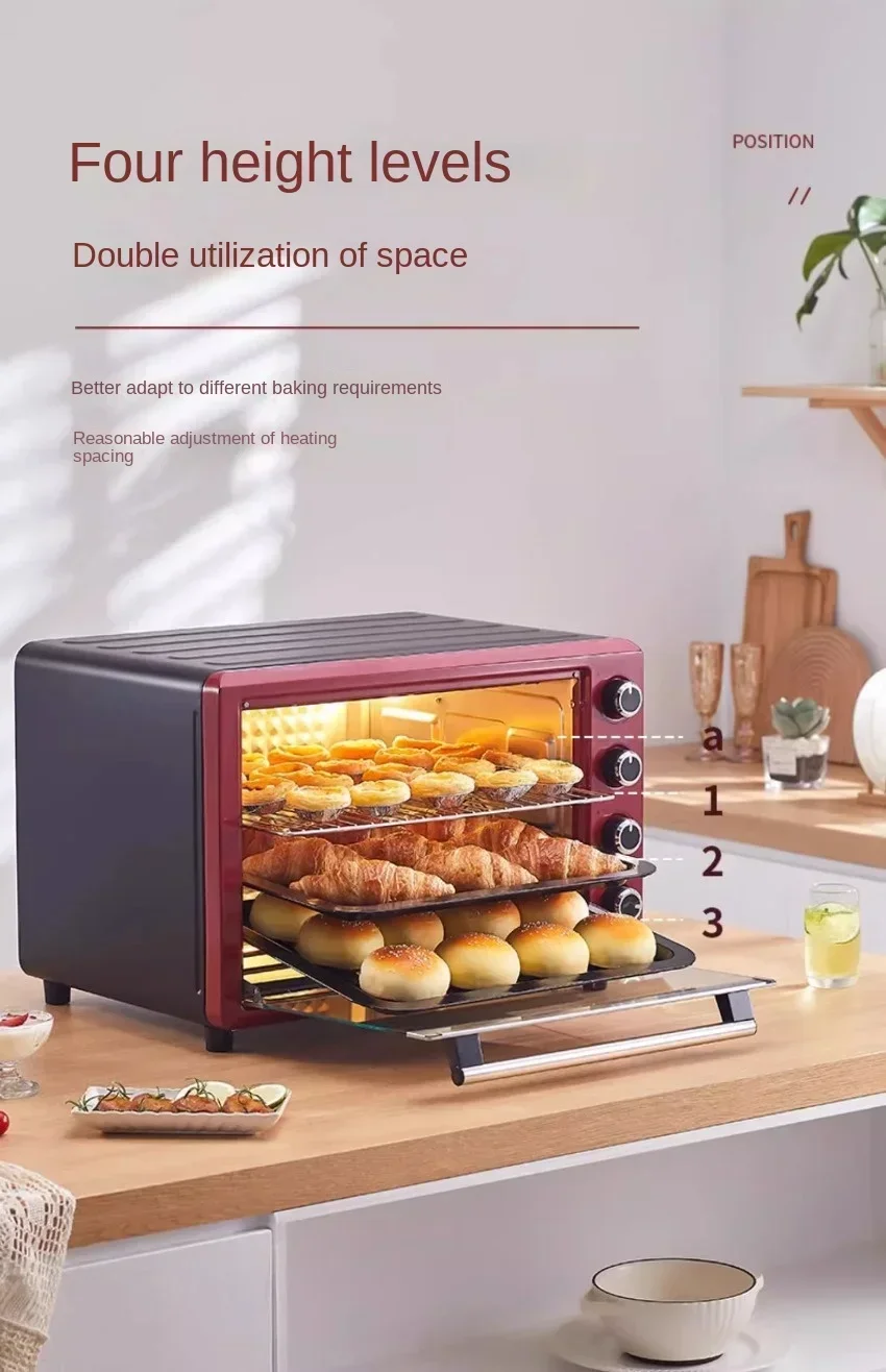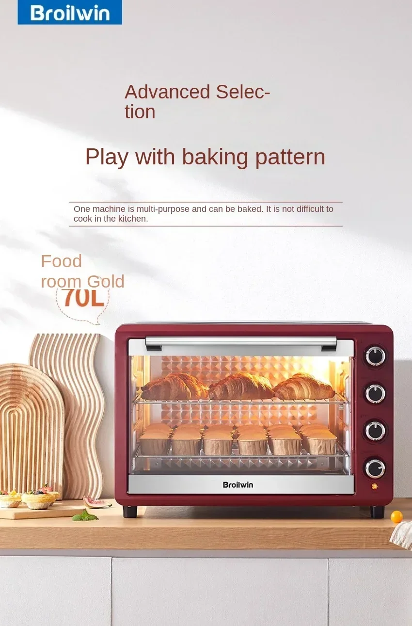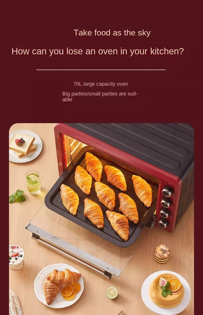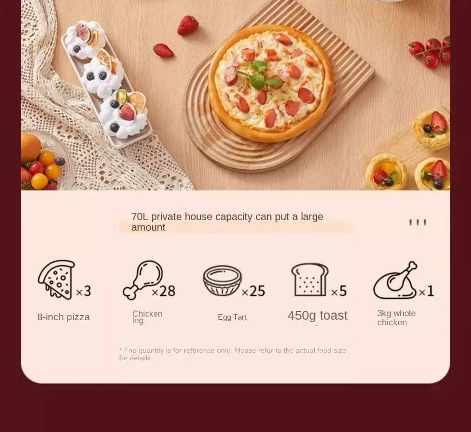 فرن كهربائي بسعة كبيرة، منزلي تجاري، 70 لترًا، كامل الوظائف، كعك خبز خاص بالهواء الساخن وكعك القمر