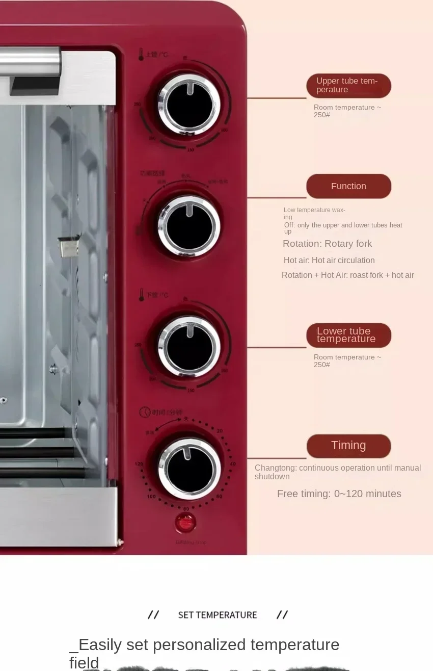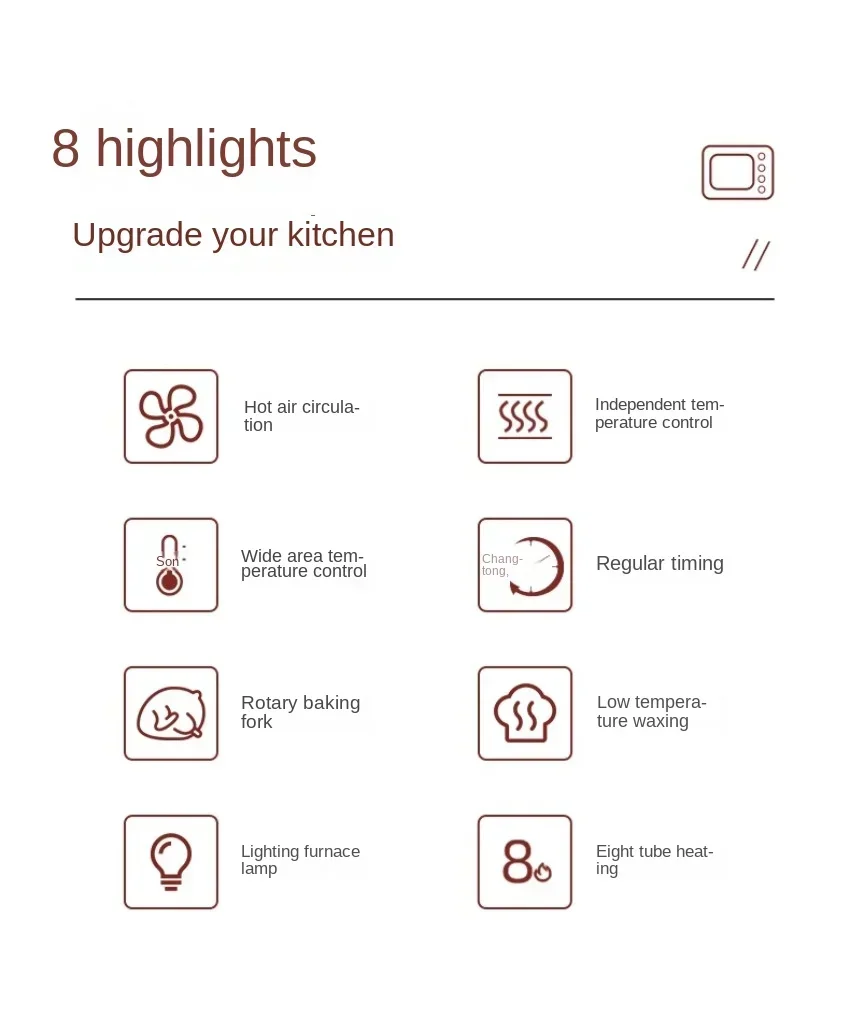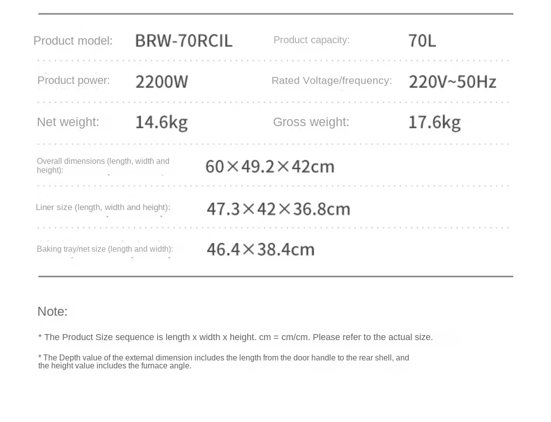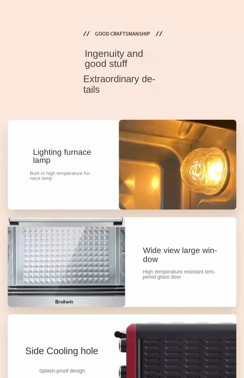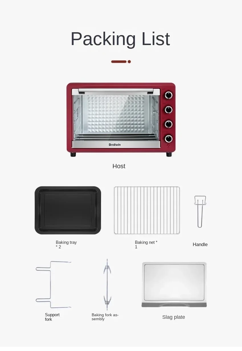 فرن كهربائي بسعة كبيرة، منزلي تجاري، 70 لترًا، كامل الوظائف، كعك خبز خاص بالهواء الساخن وكعك القمر