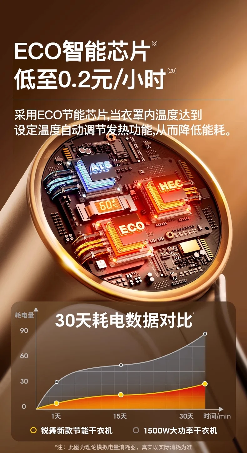 ranvoo 220V مجفف محمول تجفيف الملابس المنزلية مجفف صغير