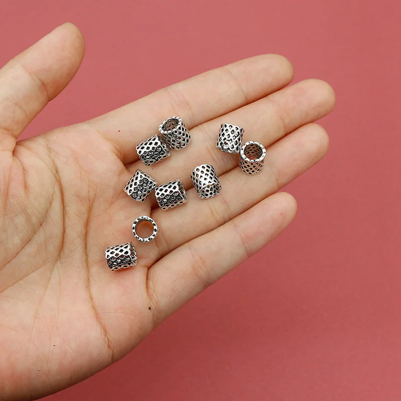حبات أنبوبية منقوشة بسيطة مجوفة ، أساور مجداف ، فواصل منسوجة بفتحات كبيرة ، نتائج مجوهرات ذاتية الصنع ، 8 × 8 ، 20 حبة لكل مجموعة